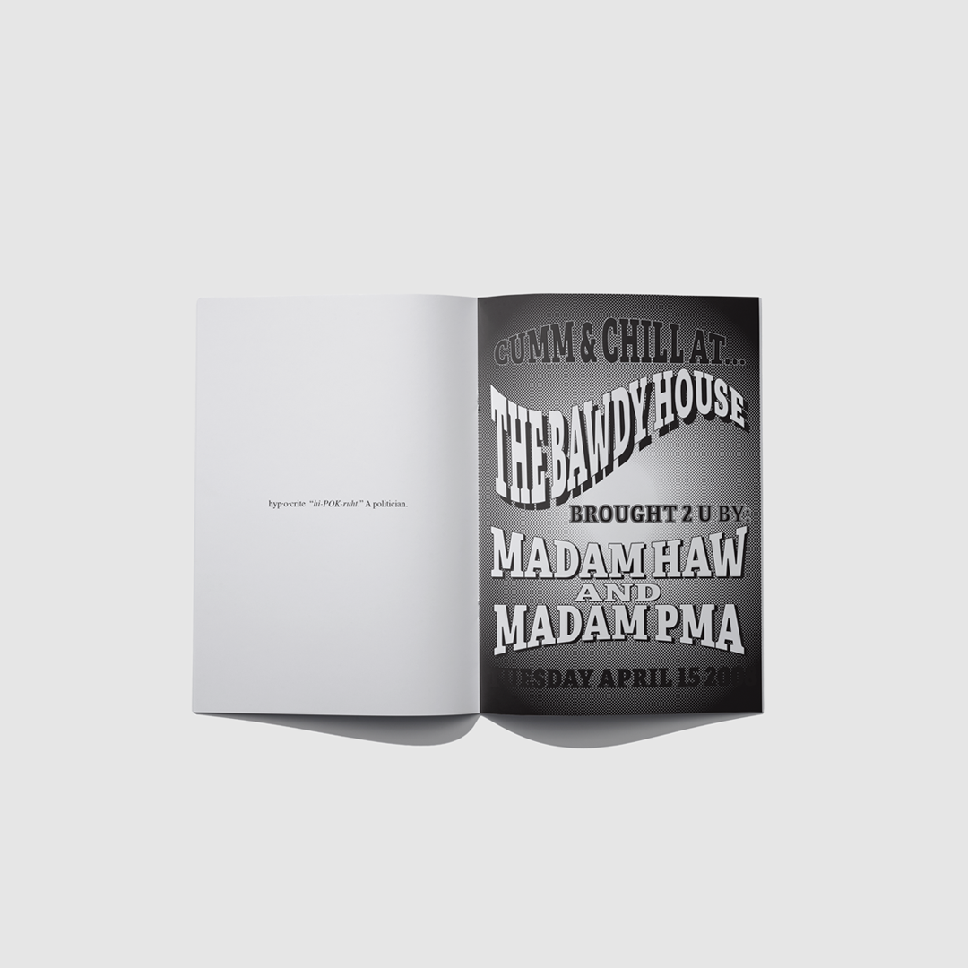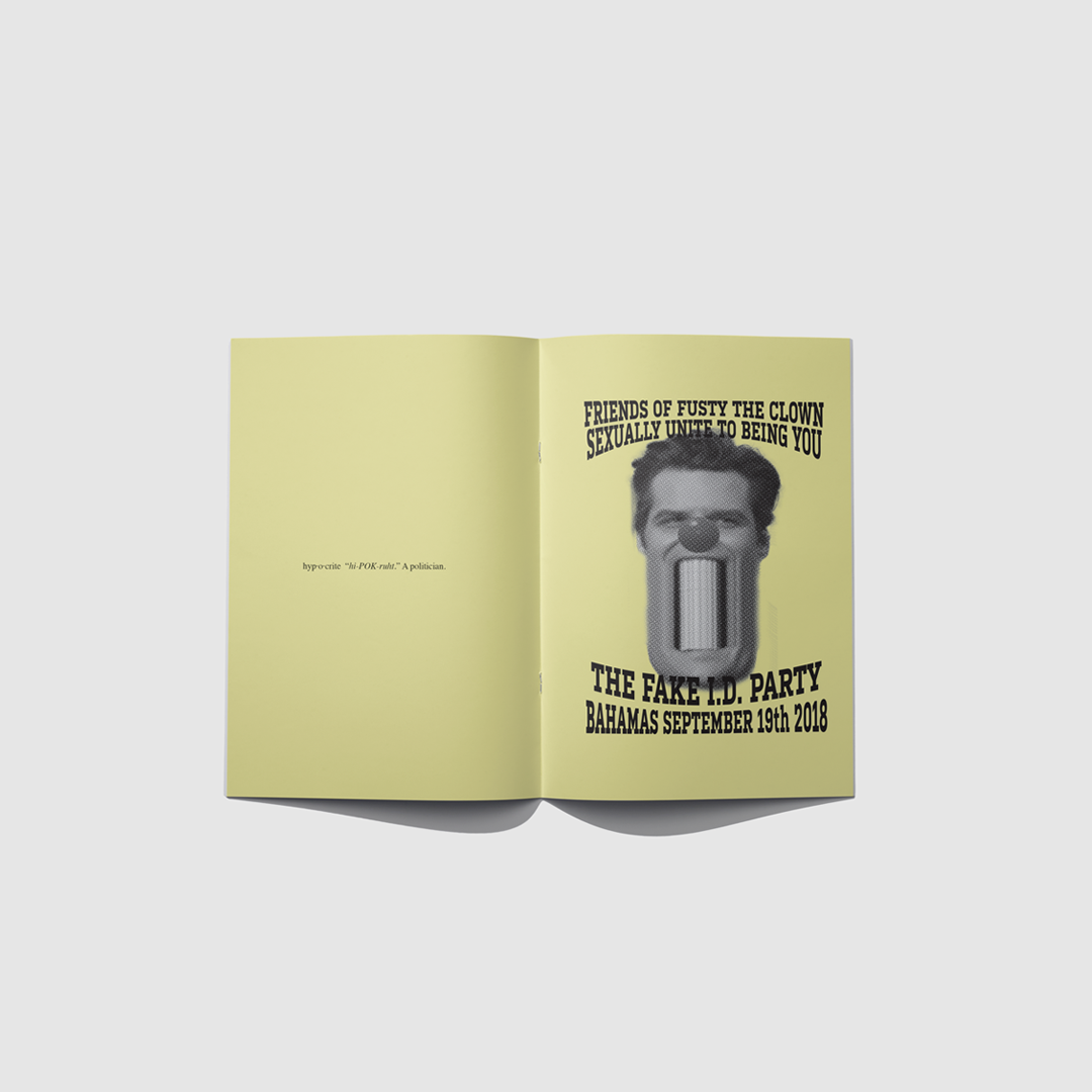 Ditch Party by Chase Meë is a 58-page zine that takes the design language from 90s LA flyer crews and reinterprets it toward US legislators and their scandals.