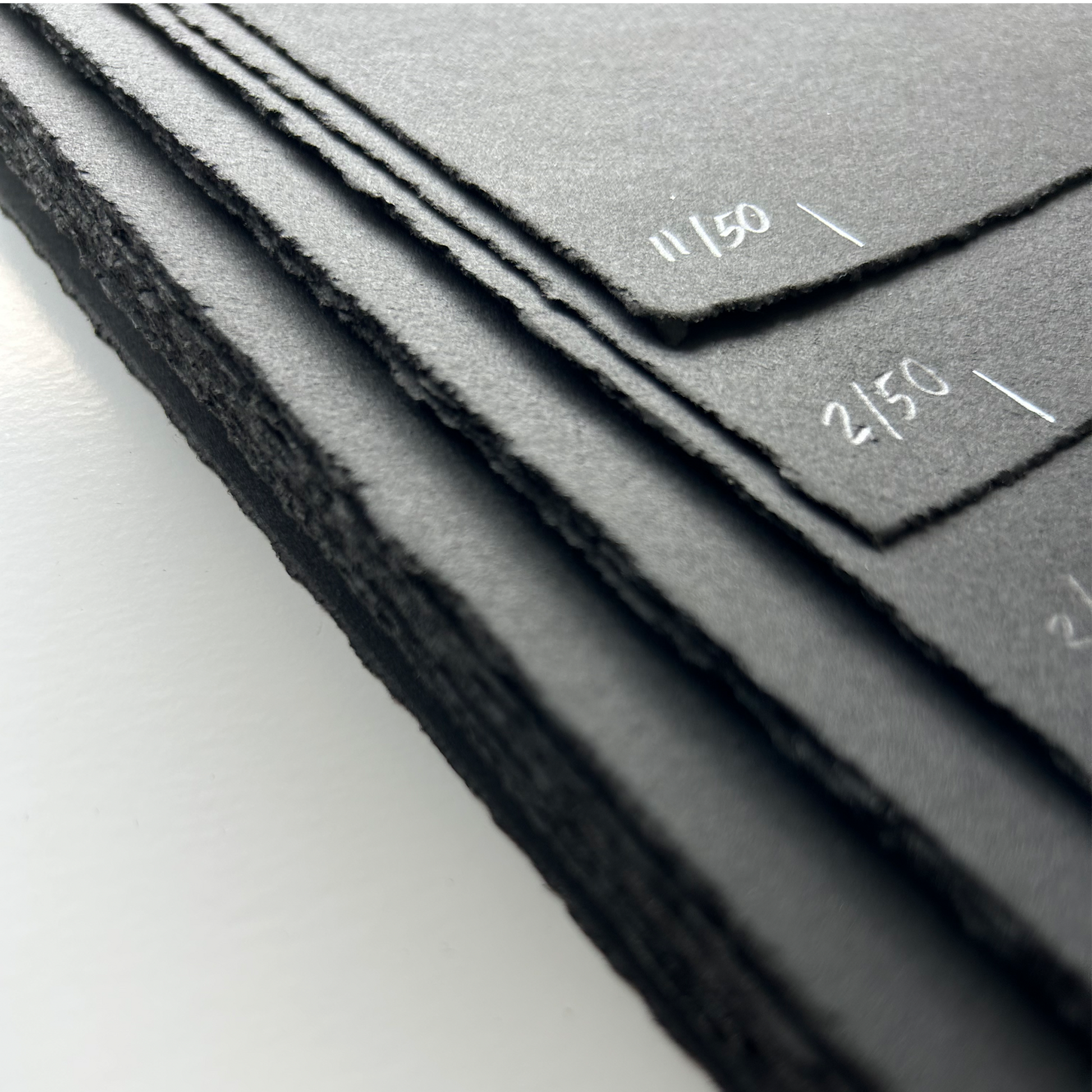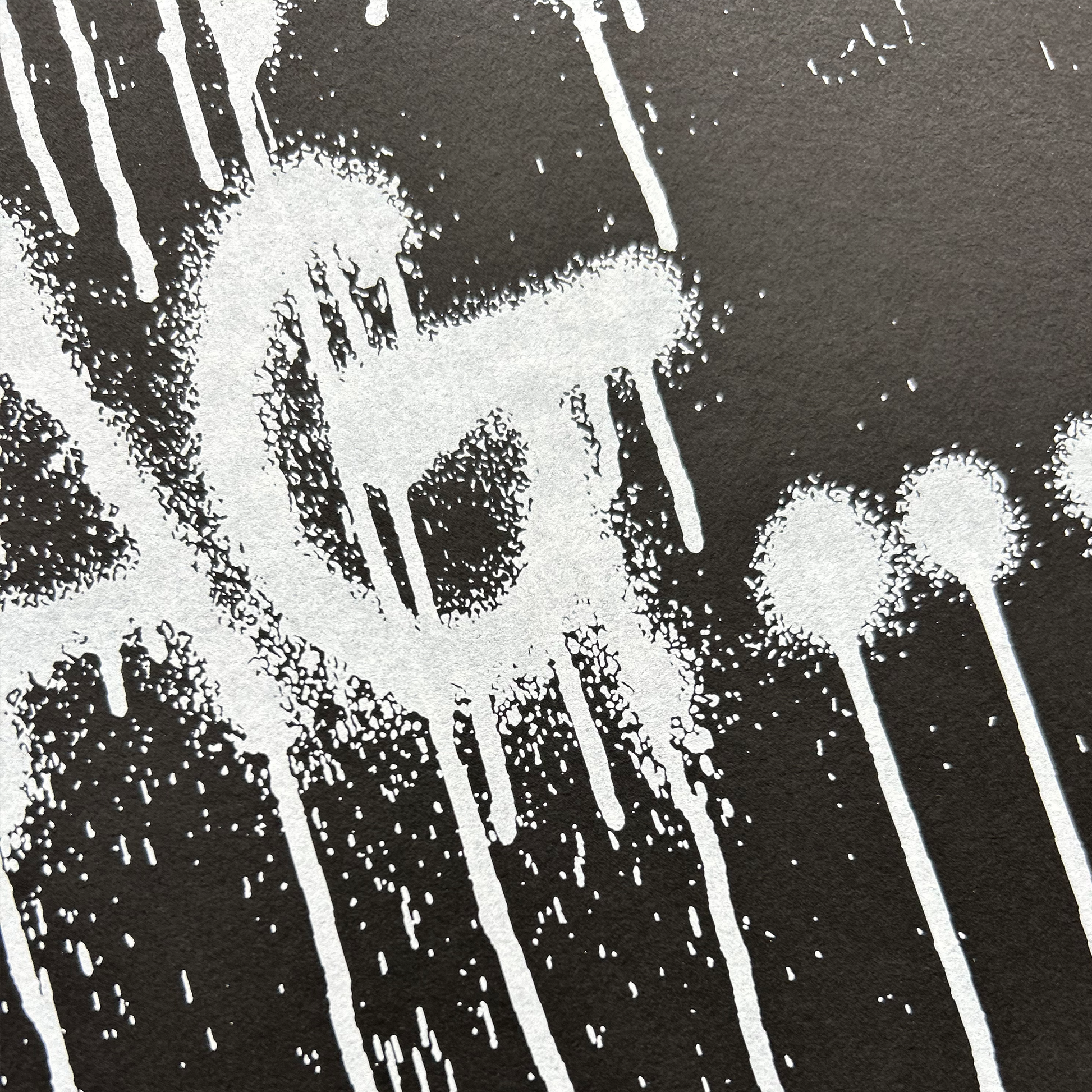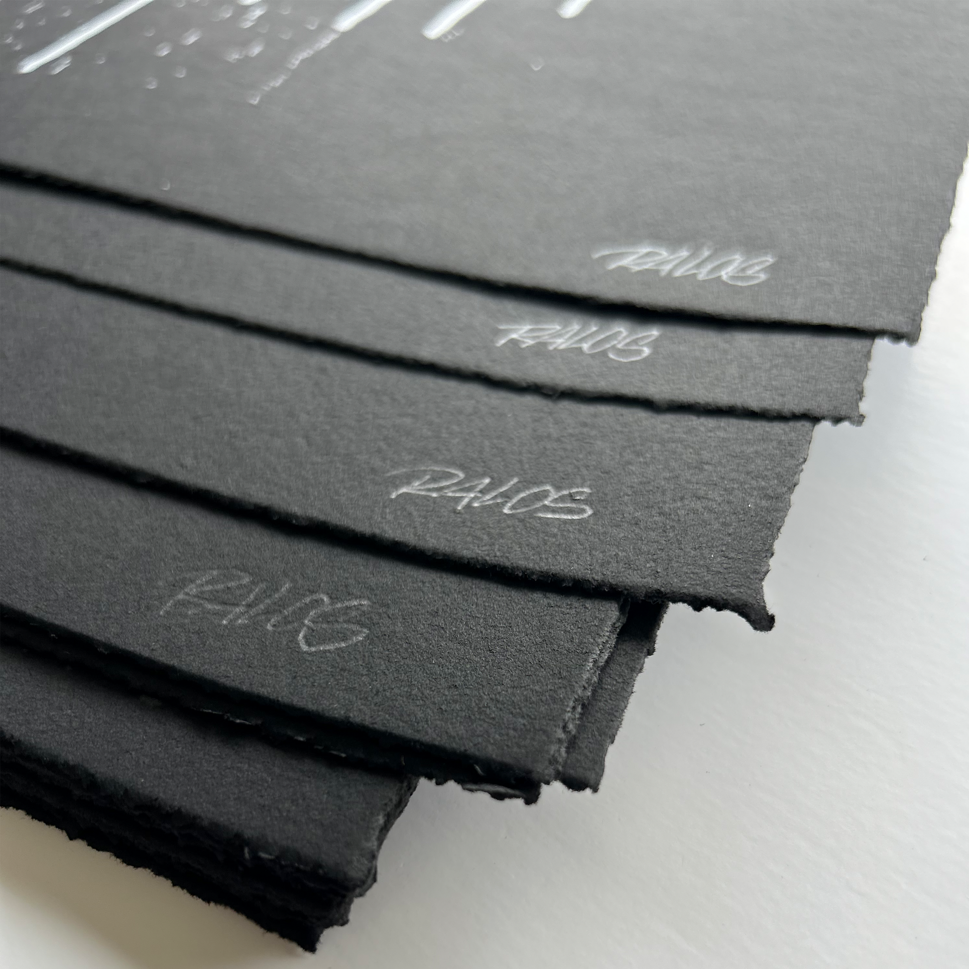 Hand-pulled silkscreen on 250gsm black stone henge with deckled edge.
